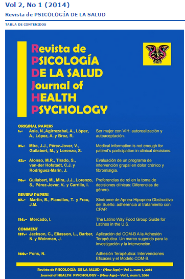 Evaluación de un programa de intervención grupal en dolor crónico y fibromialgia.