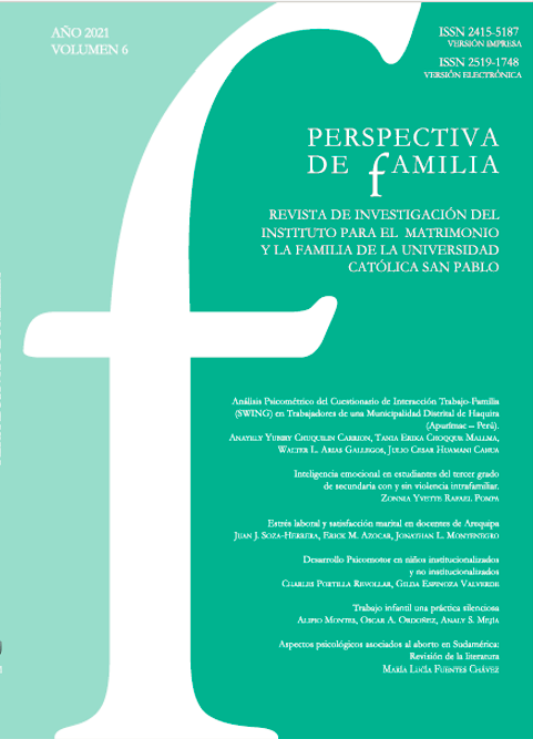 La revista Perspectiva de Familia del Instituto para el Matrimonio y la Familia de la Universidad Católica San Pablo (Perspect. fam.) ISSN 2415-5187 versión impresa y ISSN 2519-1748 versión electrónica, es una publicación libre acceso (Open Access), de periodicidad anual (octubre de cada año) que... (Ver más...)